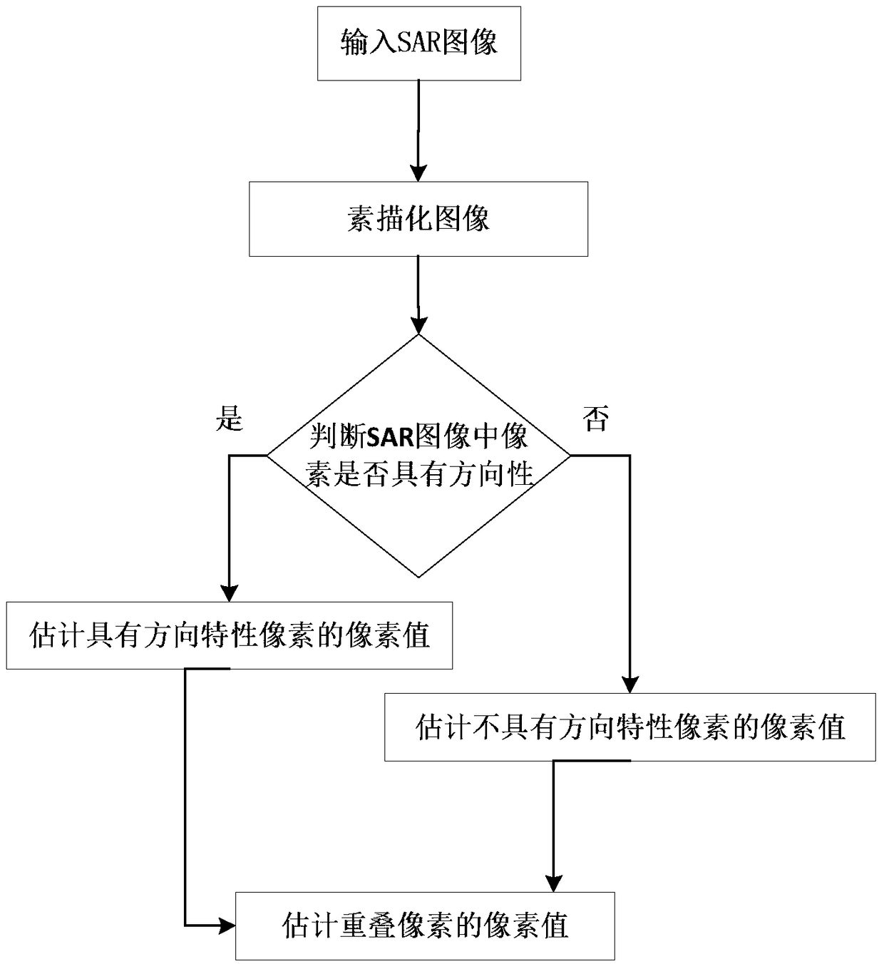 本发明公开了一种基于几何先验和分布相似性测度的SAR图像去噪方法。主要解决现有技术中无法有效调节SAR图像滤波中细节信息保持和相干斑抑制的矛盾。其实现步骤如下:(1)提取SAR图像的素描图;(2)按照素描图将合成孔径雷达SAR图像中的像素分为具有方向特性的像素和不具有方向特性的像素;(3)估计具有方向特性像素的像素值;(4)估计不具有方向特性像素的像素值;(5)对于步骤(3)和步骤(4)中的重叠像素采用基于统计加权的方式对估计值进行融合。本发明具有较好的相干斑抑制效果,可用于合成孔径雷达SAR图像的去噪。